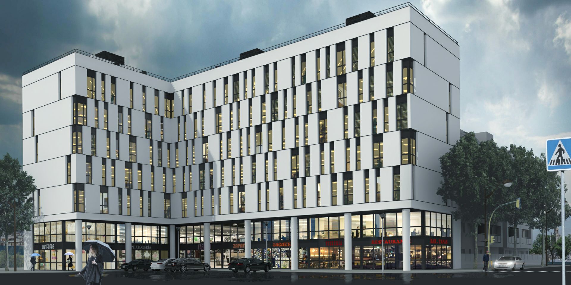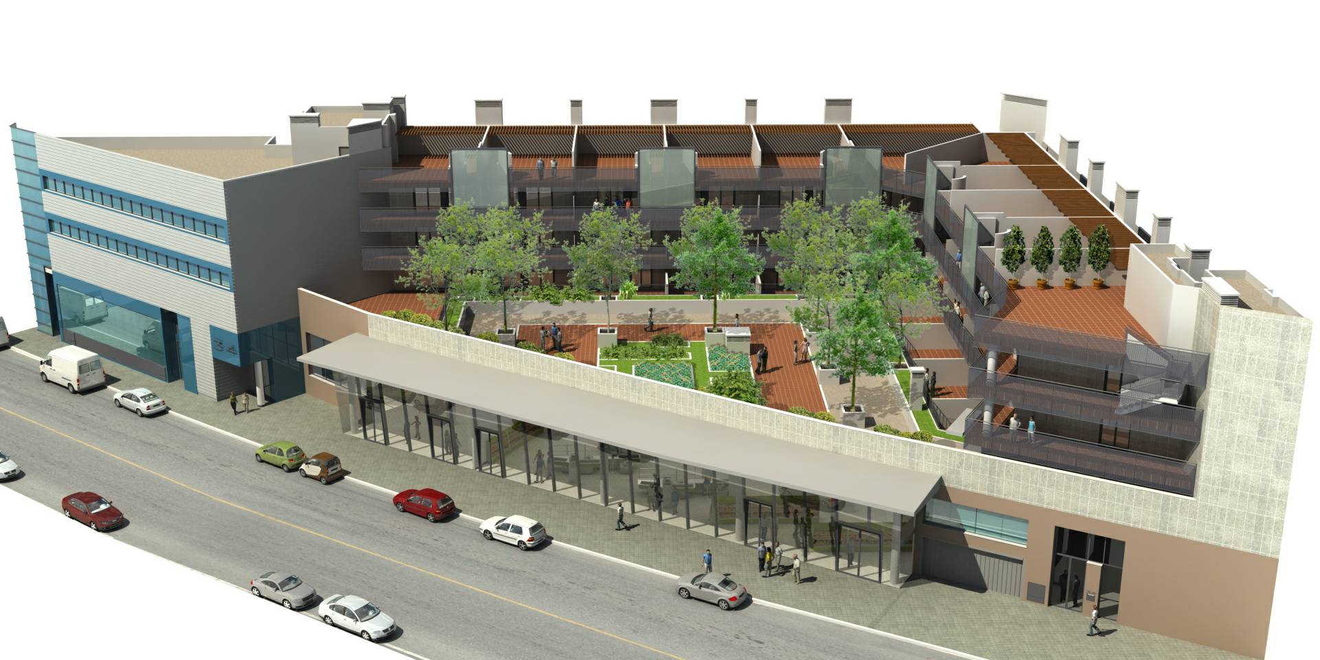 Ensemble de bureaux et centre commercial